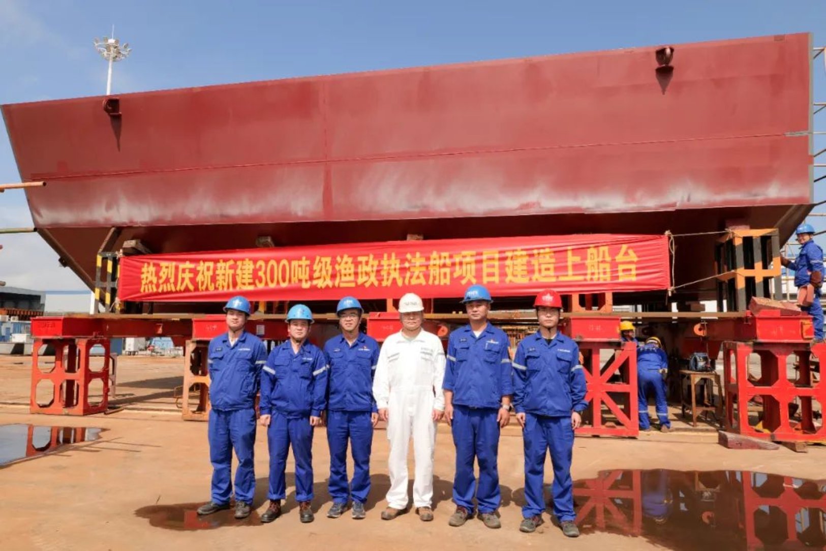 10月8日,由武昌造船為連云港市海洋與漁業(yè)綜合行政執(zhí)法支隊(duì)打造的新建300噸級(jí)漁政執(zhí)法船,在監(jiān)理、項(xiàng)目三總師及參建單位相關(guān)負(fù)責(zé)人的見證下,順利上船臺(tái),標(biāo)志該船正式進(jìn)入船臺(tái)搭載階段。