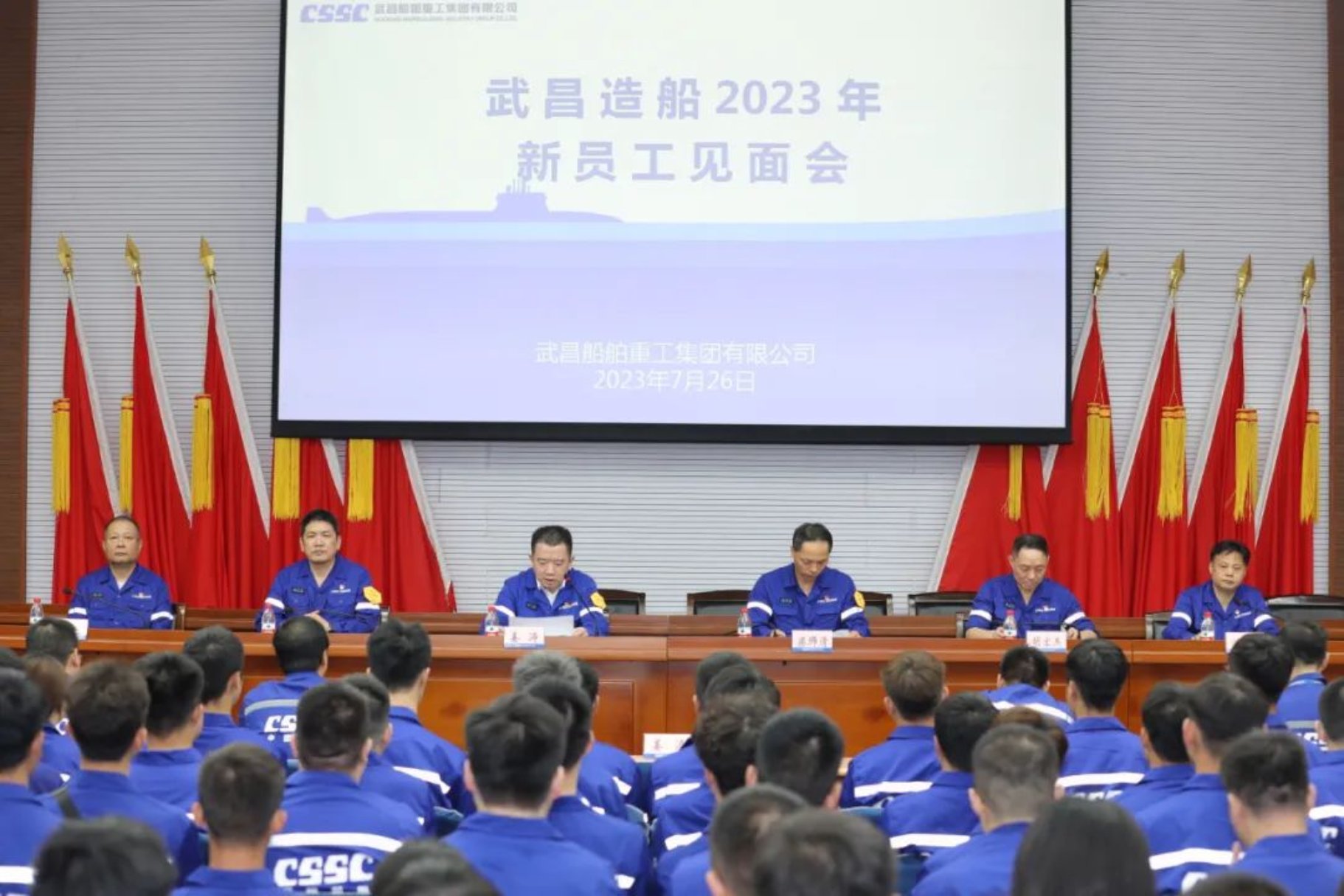 7月26日上午,中國船舶集團(tuán)武昌造船2023年新員工見面會(huì)在學(xué)術(shù)報(bào)告廳舉行。公司黨委書記、董事長姜濤為新員工講授入職第一課,240名新員工聆聽授課。公司領(lǐng)導(dǎo)梁師清、陳仲明,公司總助級(jí)領(lǐng)導(dǎo)以及黨委工作部、公司團(tuán)委、綜合管理部、人力資源部等部門負(fù)責(zé)人出席會(huì)議。