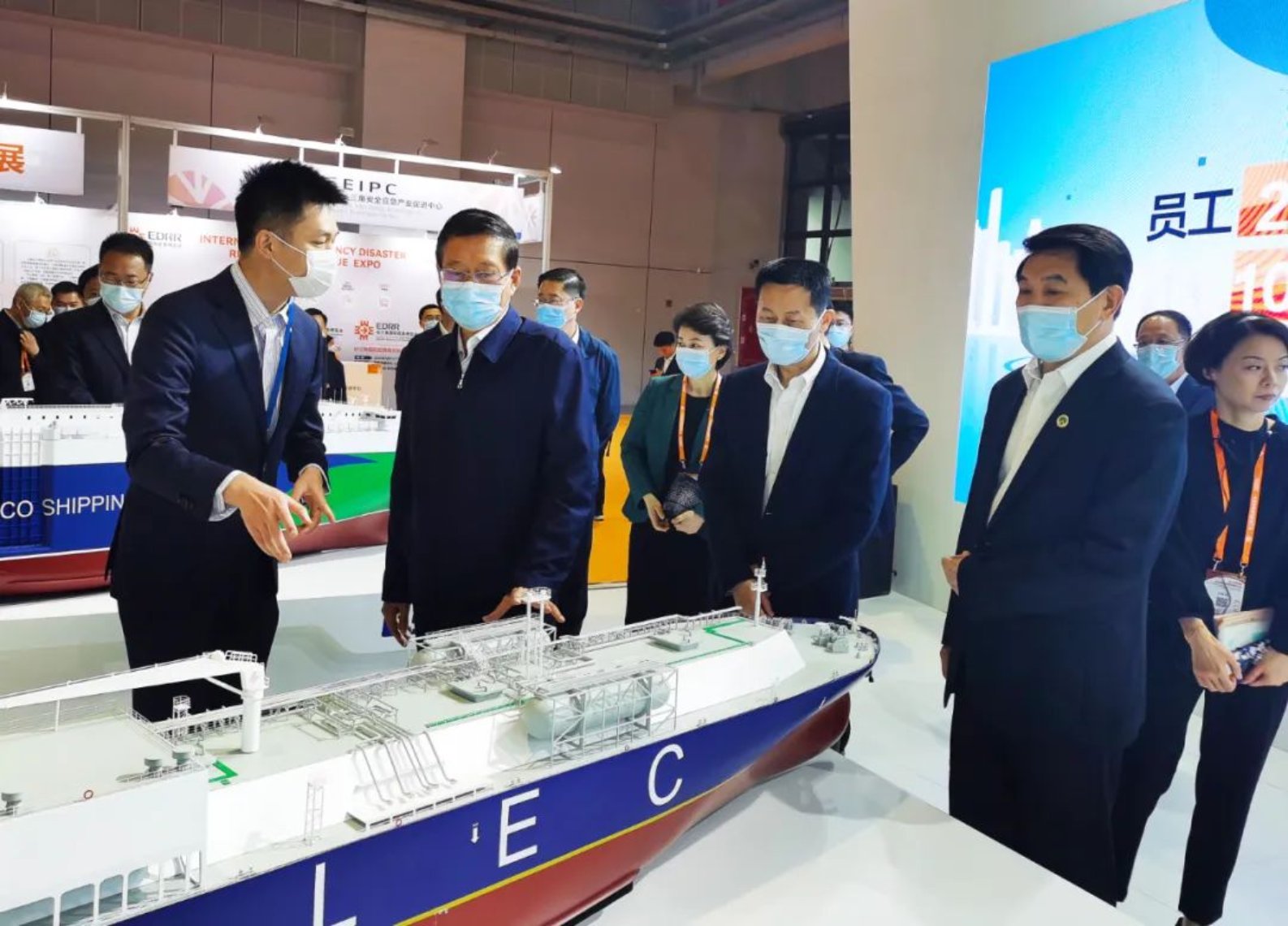 ▲應急部宋元明副部長、上海市常務副市長吳清、三省一市應急廳局長、合肥市市長、應急部司局級領導、部分外省市應急廳副廳長等一行領導現(xiàn)場蒞臨中國船舶集團展位參觀