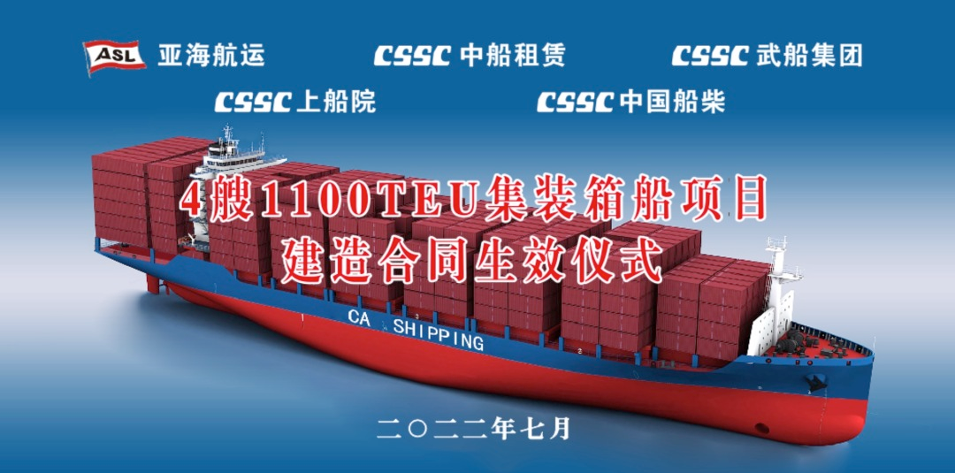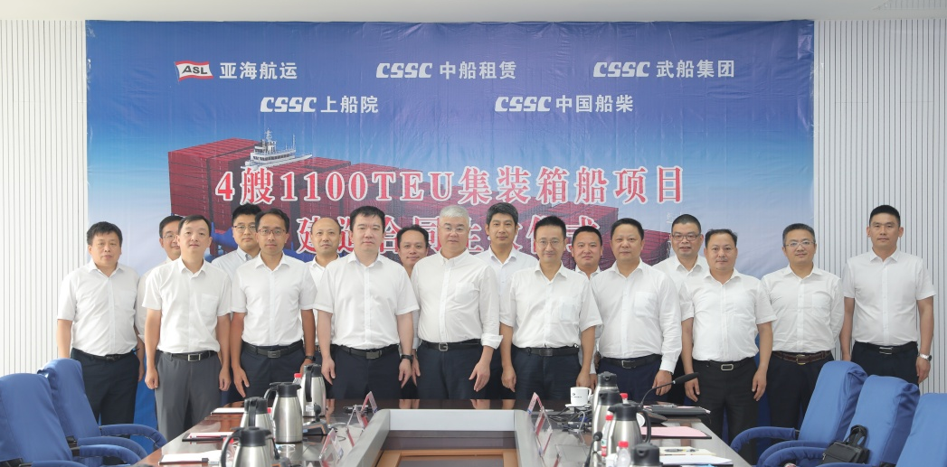 7月7日,中國船舶武船與CA SHIPPING(中船租賃和亞海航運成立的合資公司)簽署的4艘1100TEU集裝箱船項目合同生效儀式在武船總部舉行。這是公司繼此前交付的2艘700TEU集裝箱船后承接的又一支線集裝箱船訂單,為公司深耕支線集裝箱船市場,實現(xiàn)批量化、專業(yè)化建造奠定堅實基礎。