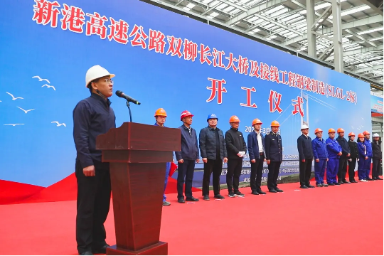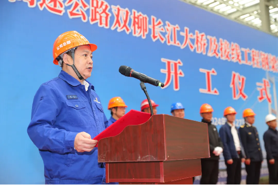▲湖北交投雙柳長江大橋有限公司黨委書記、總經(jīng)理、總監(jiān)理工程師汪西華宣布開工
