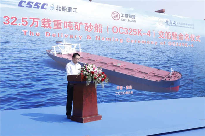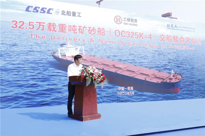 上午9:00,武船集團(tuán)北船重工為工銀租賃和招商輪船建造的第四艘32.5萬(wàn)噸礦砂船“ORE CHONGQING”輪命名暨交船儀式在3號(hào)碼頭舉行,這是各方在黨中央的正確領(lǐng)導(dǎo)下,抗擊疫情取得的重要成果。工銀租賃航運(yùn)金融事業(yè)部副主管賈浩、北船重工總經(jīng)理谷克超代表雙方簽署了交船議定書(shū)。