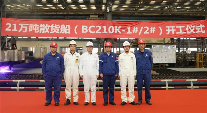 11月15日上午10時(shí)18分,由武船集團(tuán)北船重工承接建造的中遠(yuǎn)海運(yùn)散貨運(yùn)輸有限公司21萬(wàn)噸散貨船首制船(BC210K-1#/2#)順利開工。這標(biāo)志著此項(xiàng)目由前期生產(chǎn)技術(shù)準(zhǔn)備工作轉(zhuǎn)入生產(chǎn)建造階段。