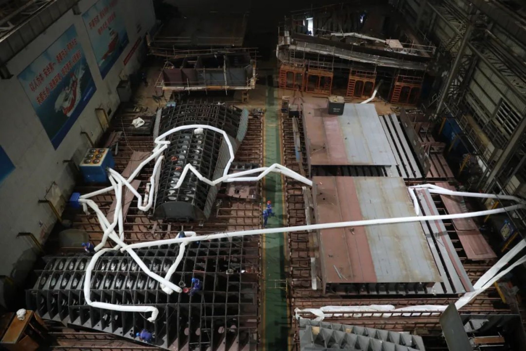 希臘1100箱集裝箱船1號船總工藝師安志杰表示:“分段部結合船型特點和現有設施,以提升效率為基點,和設計人員聯(lián)動,通過提前謀劃、高效焊接、舾裝前移、即刻溝通等措施,實現了分段高效制造和完整轉序,確保了后續(xù)建造周期。”