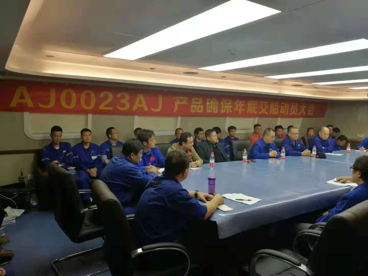該產品交付工作時間緊、任務重,交船隊各級參試人員將貫徹落實動員會精神,把各項工作抓緊抓實抓到位,通力協(xié)作,齊心合力,確保年底交船。