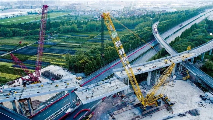 紅墾橋位于蕭山機(jī)場附近的一處交通樞紐點(diǎn),周邊有G92(杭甬)、G2504杭州繞城高速公路東線和G60(杭金衢)三條高速縱橫交錯。項(xiàng)目拼裝場地狹小,施工周期緊迫,施工技術(shù)難度大,工藝可循先例少、工期緊張、全程涉高速施工安全風(fēng)險高、多地聯(lián)動交通組織難度高等諸多困難。