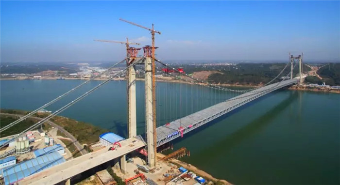 湖北白洋長(zhǎng)江大橋是宜昌至張家界高速公路在宜昌境內(nèi)跨越長(zhǎng)江的通道,也是湖北省“753”骨架公路網(wǎng)中規(guī)劃“縱6”的重要組成部分,全長(zhǎng)2160米,主跨1000米,為雙塔鋼桁梁懸索橋。