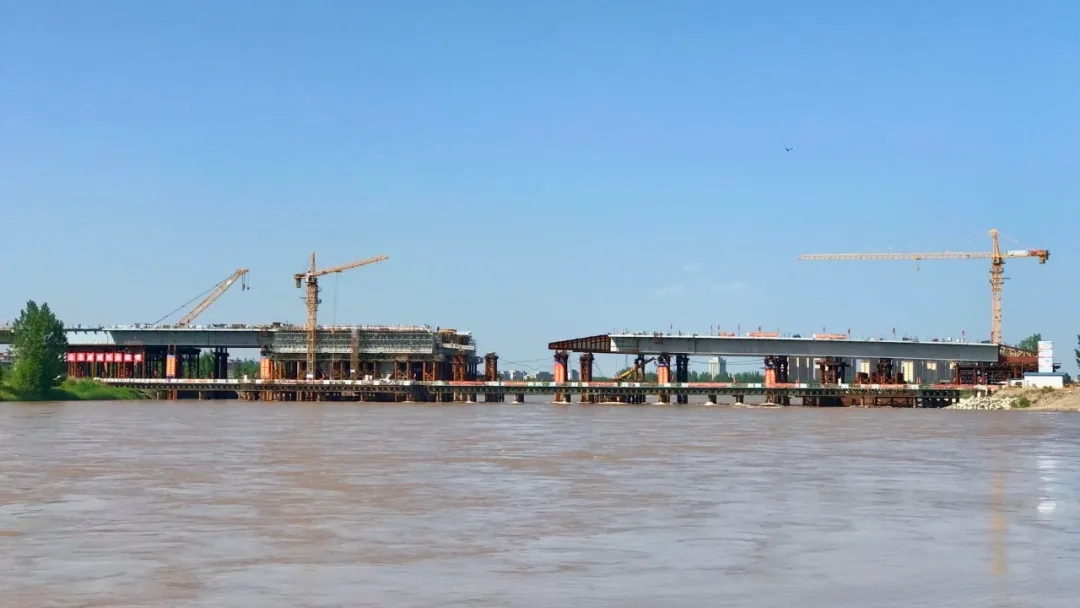 中衛(wèi)南站黃河大橋位于寧夏回族自治區(qū)的中衛(wèi)市機(jī)場(chǎng)大道與平安西路交叉處,線路全長1.84千米,武船重工股份承擔(dān)該橋16#-20#橋墩范圍內(nèi)的鋼結(jié)構(gòu)施工及架設(shè),處于黃河流域水流湍急的河段,施工難度較大,施工風(fēng)險(xiǎn)較高。為此,武船重工股份收集了歷年水文資料以及多方請(qǐng)教,預(yù)判“洪峰”的到來期,同時(shí)對(duì)水中的八組臨時(shí)支架進(jìn)行全面加固,制定了專項(xiàng)施工計(jì)劃,增加施工人員,加快施工進(jìn)度,最終在“洪峰”來臨之前,完成了鋼箱梁頂推工作。