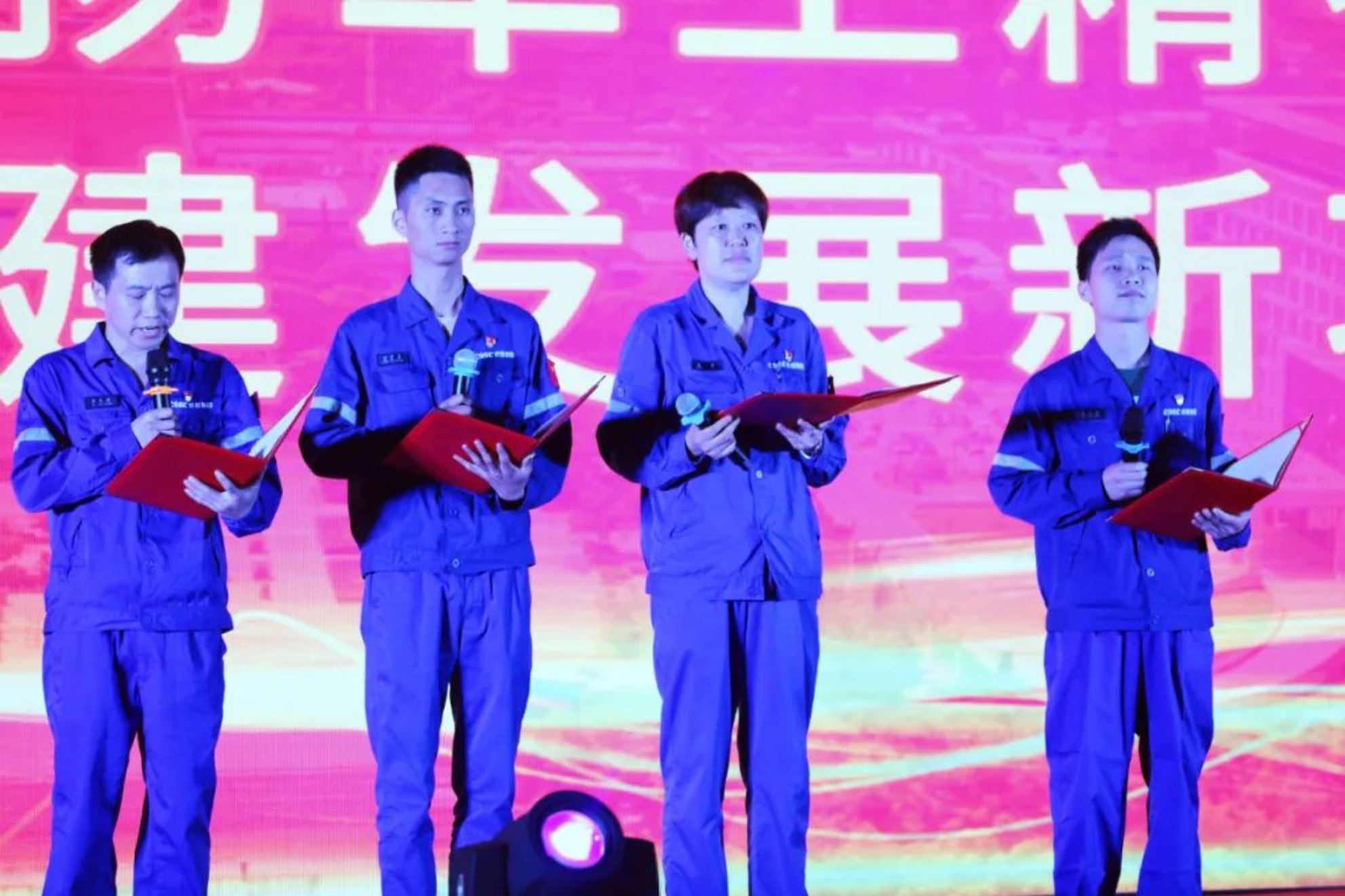 ▲機(jī)電公司四位省市勞模代表(從左至右)李志雄、彭有昌、程麗、陶興泉詩朗誦