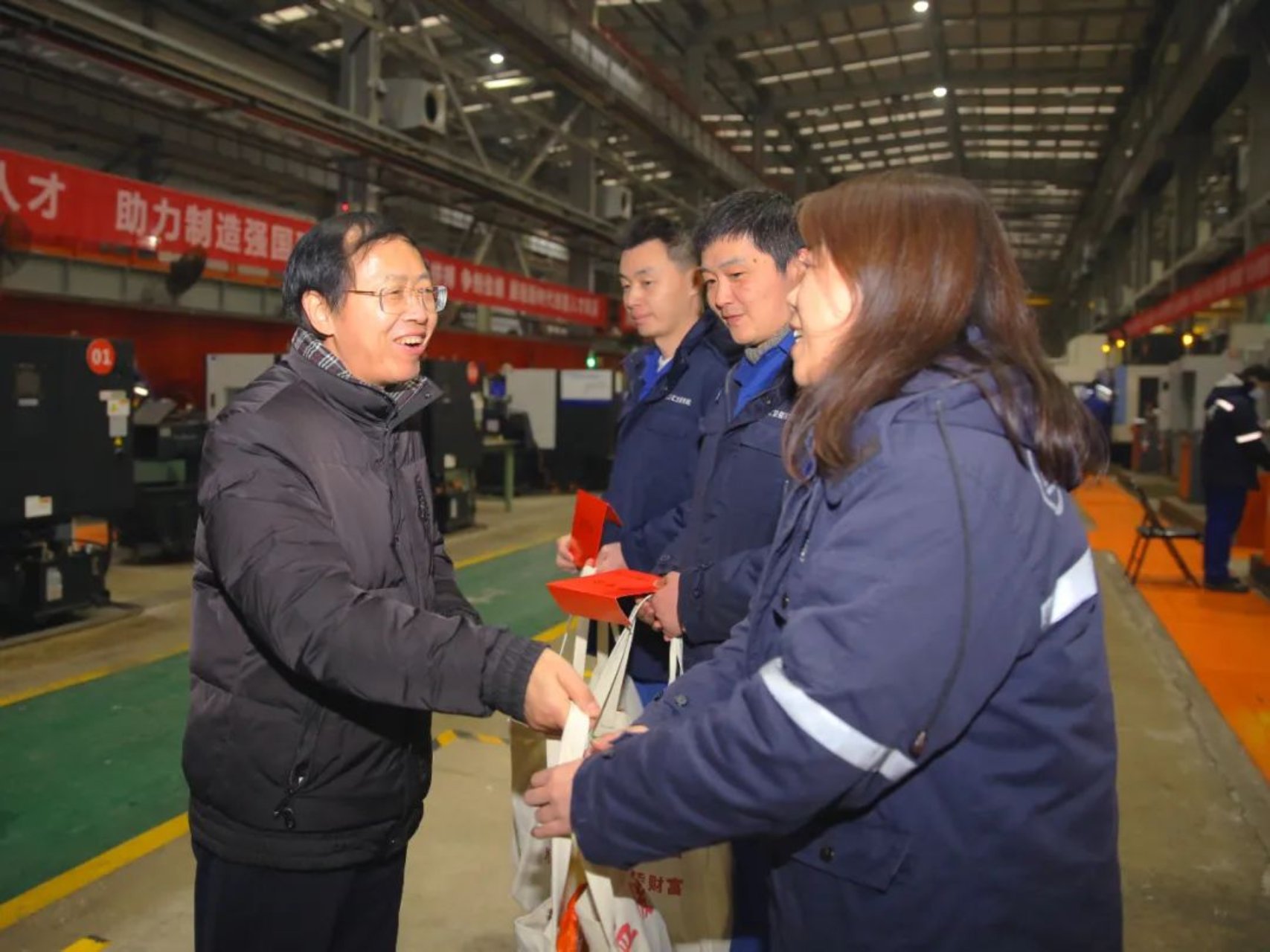 秦少相主席指出,各級工會組織要深入學(xué)習(xí)習(xí)近平關(guān)于工人階級和工會工作論述摘編內(nèi)容,聚焦中國工會十八大部署,堅持以職工為中心的工作導(dǎo)向,更直接、更深入、更貼近廣大職工群眾開展送溫暖慰問活動。春節(jié)將至,代表中國國防郵電工會對武昌造船廣大干部職工致以節(jié)日的問候。