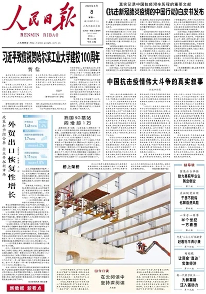 6月8日出版的《人民日?qǐng)?bào)》頭版