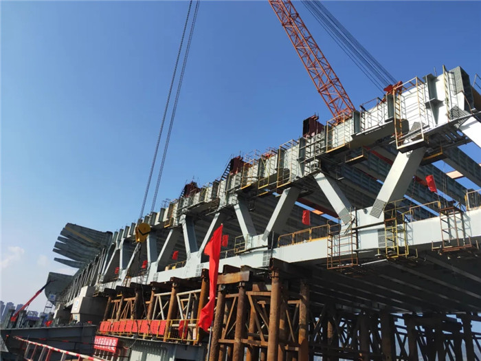 至此,全橋1.7萬余噸鋼桁梁桿件全部安裝完成,該工程鋼結構部分實現(xiàn)全線貫通,為明年年底全橋建成通車奠定了基礎。