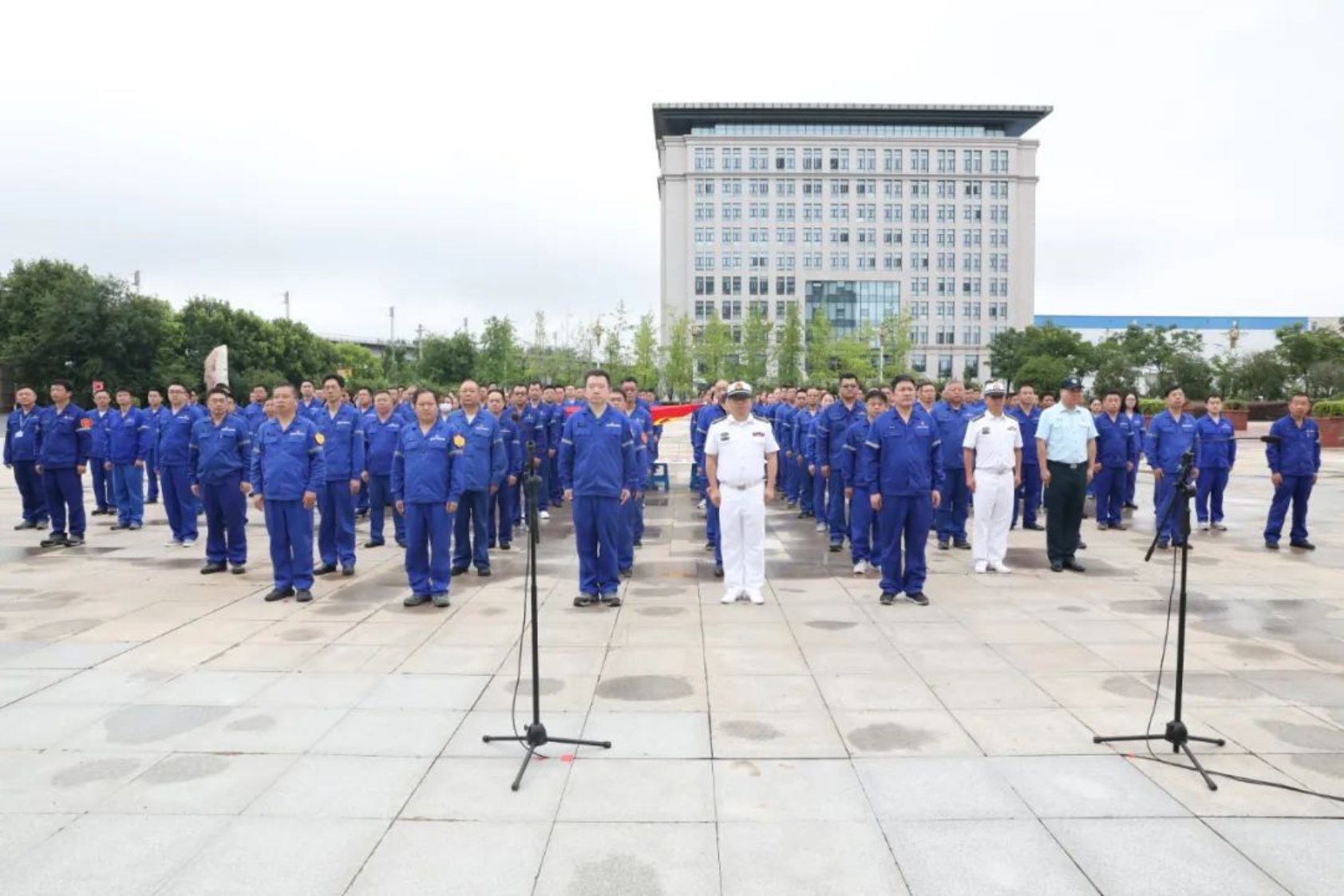 在公司偉人廣場(chǎng)舉行的升國(guó)旗儀式,公司領(lǐng)導(dǎo)、海裝駐武漢地區(qū)第一軍事代表室代表、各單位黨組織專(zhuān)兼職書(shū)記、黨員代表150余人參加。伴隨著莊嚴(yán)的國(guó)歌,五星紅旗、中國(guó)船舶集團(tuán)司旗、武昌造船司旗冉冉升起,在場(chǎng)黨員干部們共同唱響國(guó)歌、行注目禮。