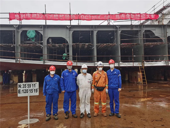 北船重工項目部精心組織,精密部署,周密協調,精益施工,抓主線,理流程,合理編排計劃,對重點項目進行重點編排施工計劃,合理規(guī)避交叉作業(yè)及避免返工施工。同時,管理人員下沉生產一線,在提前梳理、汲取32.5萬噸礦砂船1、2號船經驗的基礎上,全面投入到現場施工及報驗工作,加大與船東船檢溝通協調力度,嚴把檢驗關口,提高報驗效率和頻率,最終實現了該船碼頭系泊調試有效周期僅為57天,刷新了該系列船舶最短碼頭施工周期。