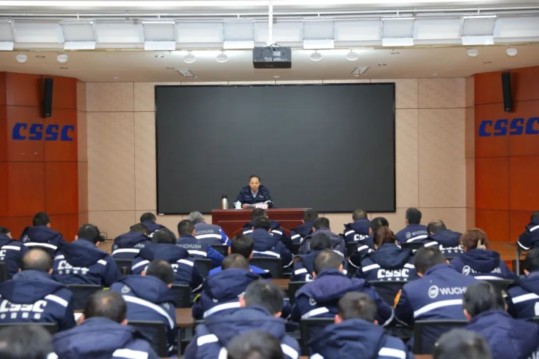2月21日晚,中國船舶集團(tuán)武昌造船黨委副書記、總經(jīng)理梁師清在創(chuàng)新樓12樓武船講堂為民船戰(zhàn)線的黨員干部講授形勢任務(wù)主題黨課。船舶總裝部、涂裝工程部和起運(yùn)工程部的中層管理人員、基層管理人員、黨員代表參加黨課學(xué)習(xí)。