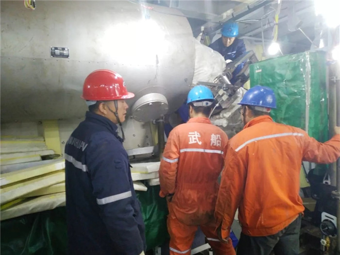 該船于10月16日順利下水,碼頭調(diào)試時(shí)間緊,任務(wù)重。為保證該船各項(xiàng)目順利推進(jìn),船舶公司領(lǐng)導(dǎo)常駐生產(chǎn)現(xiàn)場(chǎng),合理安排生產(chǎn)計(jì)劃,統(tǒng)籌資源,施工人員相互合作,認(rèn)真監(jiān)測(cè)軸系運(yùn)行情況,調(diào)整各缸的工作參數(shù)及功率,各項(xiàng)試驗(yàn)有序進(jìn)行,圓滿完成主機(jī)動(dòng)車任務(wù)。
