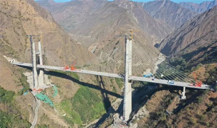 云南雙河特大橋是一座高低塔組合梁斜拉橋,也是云南省最大的高低塔組合梁斜拉橋。