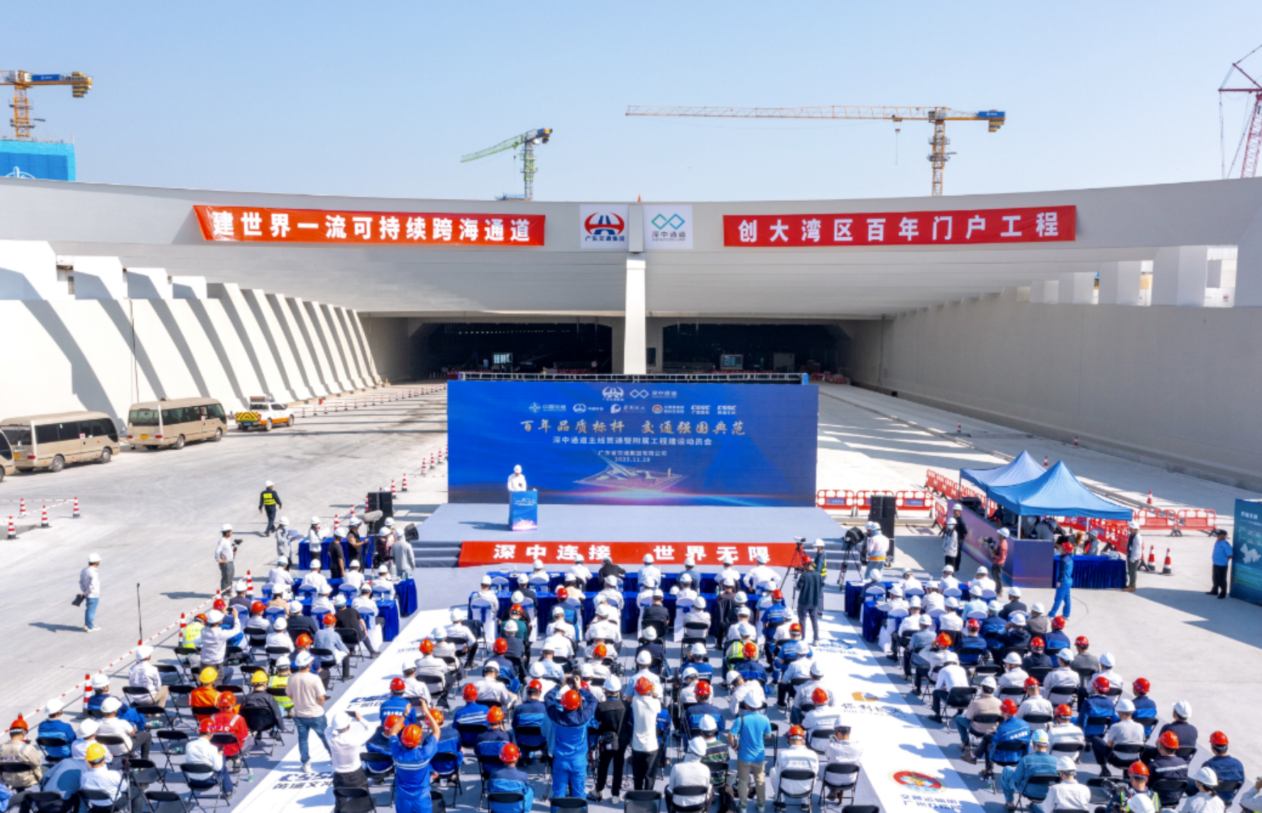 貫通儀式在西人工島舉行,武昌造船重工公司相關(guān)負(fù)責(zé)人受邀參加貫通儀式。武昌造船重工公司承制的深中通道G03標(biāo)包含伶仃洋大橋的一半(深圳側(cè)的一半和合龍段J段)及東泄洪區(qū)非通航孔橋,鋼箱梁總重約9.77萬噸,是深中通道項目橋梁鋼結(jié)構(gòu)中最大標(biāo)段。