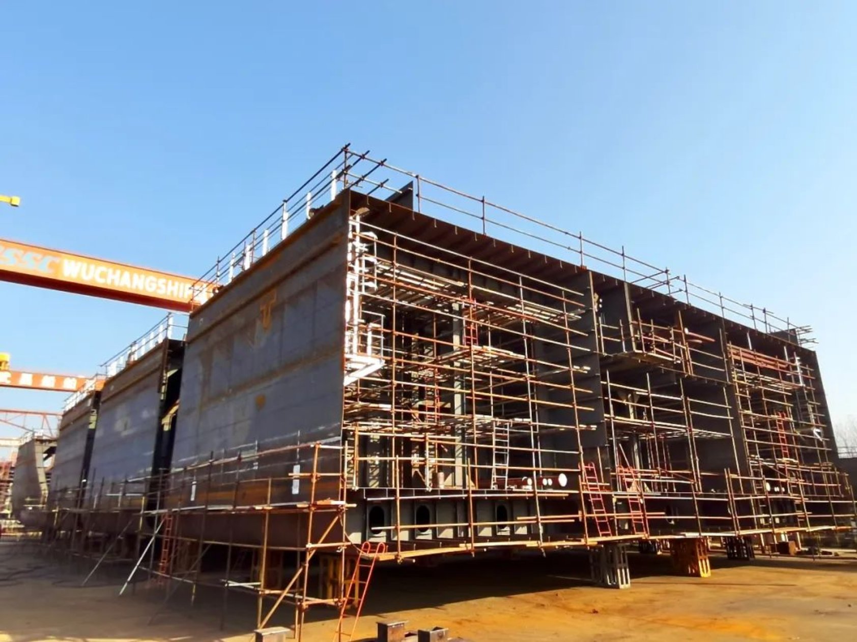 12月22日下午2點38分,由武昌造船承建的第15艘13000DWT甲板運輸船順利實現(xiàn)上船臺節(jié)點,比計劃時間提前5天,同時標(biāo)志該船正式進入船臺搭載階段。船東、船檢以及相關(guān)單位負(fù)責(zé)人參加上船臺儀式。