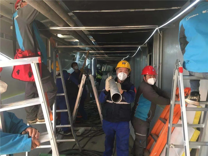 “火神山醫(yī)院每層天花板內(nèi)部空間小是小了一點(diǎn),燒焊燒到上面的時(shí)候,人進(jìn)不去,進(jìn)不去就看不到焊縫。于是,我們就在旁邊支架上,固定一塊小的反光鏡,對(duì)著鏡子繼續(xù)燒,這也是我們經(jīng)常會(huì)用到的方法。其實(shí),室內(nèi)施工還算好的,雷神山醫(yī)院頂樓天臺(tái)相當(dāng)于外場(chǎng)施工,聽(tīng)說(shuō)施工前一天晚上還下了大雨,可能會(huì)比較麻煩一些。”參與火神山建設(shè)的龔思帆說(shuō)道。