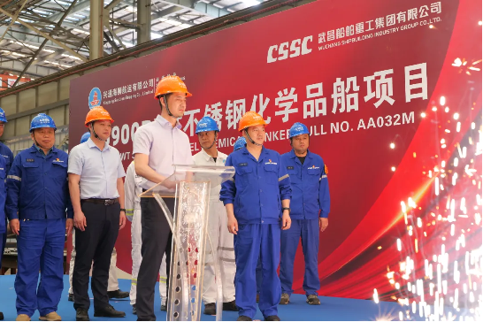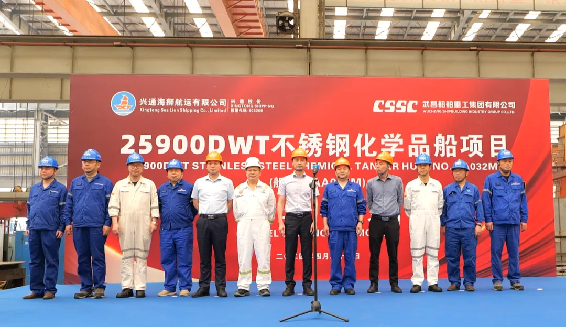 4月23日10點38分,由中國船舶集團(tuán)武昌造船為興通海運(yùn)股份有限公司下屬子公司興通海獅航運(yùn)有限公司建造的25900載重噸不銹鋼化學(xué)品船1號船正式開工。興通海運(yùn)股份有限公司副總裁陳其德一行及現(xiàn)場監(jiān)造團(tuán)隊,美國船級社,武昌造船黨委委員、副總經(jīng)理田軍及公司各部門相關(guān)負(fù)責(zé)人參加開工儀式。