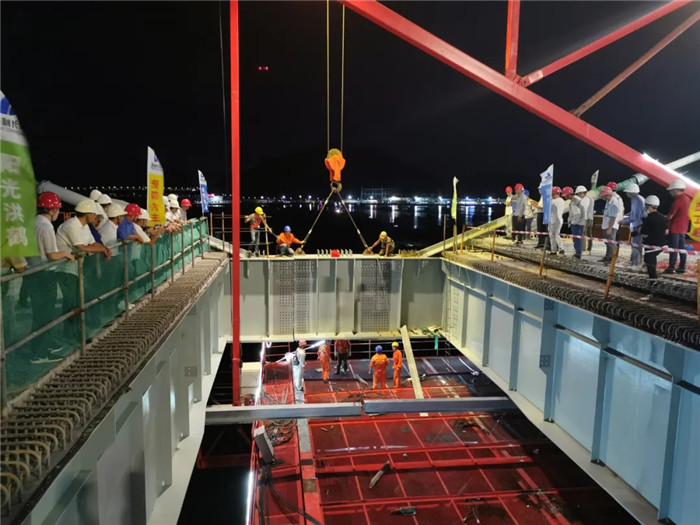 春節(jié)過后,項目受新冠肺炎疫情影響,工期有所滯后。由于珠海每年7-8月為臺風(fēng)頻發(fā)季節(jié),如不能按原計劃在6月底實現(xiàn)全橋合龍,將大大增加施工安全風(fēng)險。在業(yè)主、總包單位的大力支持下,在武船重工股份的統(tǒng)籌安排和努力下,抽調(diào)非湖北籍的項目人員和施工人員返崗,在2月22日實現(xiàn)復(fù)工復(fù)產(chǎn)。復(fù)工以后,武船重工股份倒排工期,圍繞預(yù)期目標(biāo)開展黨員示范工程項目和專項勞動競賽,優(yōu)化資源配置和人員安排,在確保質(zhì)量和安全的前提下?lián)屪スて?,最終在臺風(fēng)季來臨之前實現(xiàn)了全橋合龍。