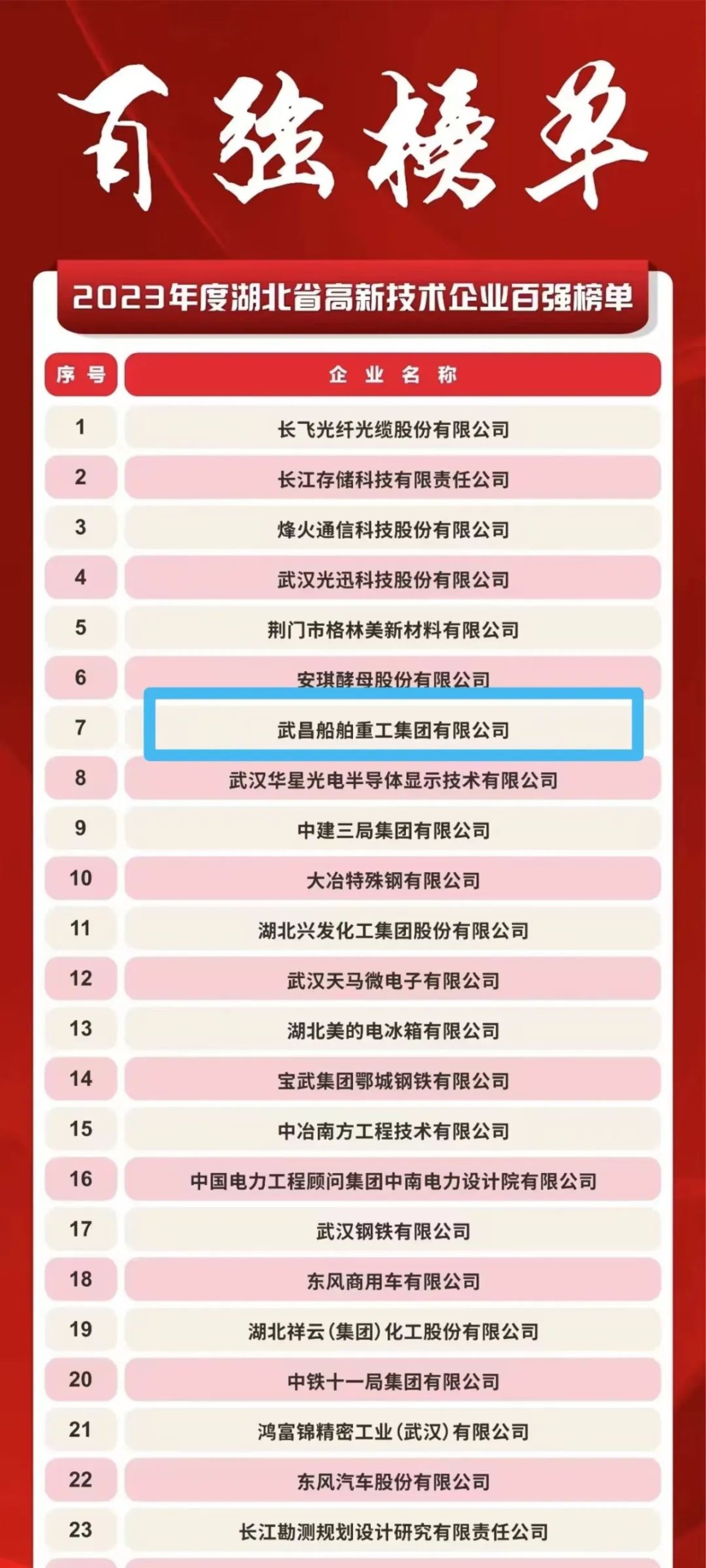 3月7日,湖北省科技廳組織召開了2024年湖北省高新技術(shù)企業(yè)“春曉行動”啟動會,會上發(fā)布了湖北省2023年度高新技術(shù)企業(yè)百強名單,中國船舶集團(tuán)武昌造船繼2022年度后再次上榜,且排名從2022年度的第62名上升至第7名。